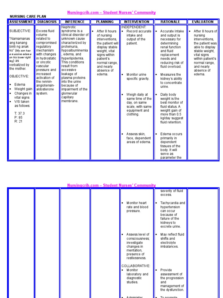 Nursing Care Plan Nephrotic Syndrome Pdf Edema Kidney